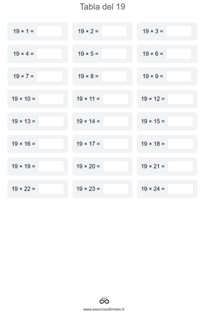 Ces exercices ludiques facilitent la mémorisation de la table de 19 et rendent l’apprentissage plus motivant.
