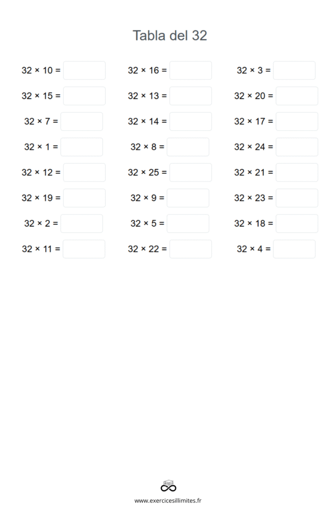 Avec un entraînement régulier, la table de 32 devient plus facile à mémoriser.